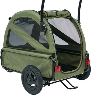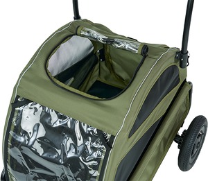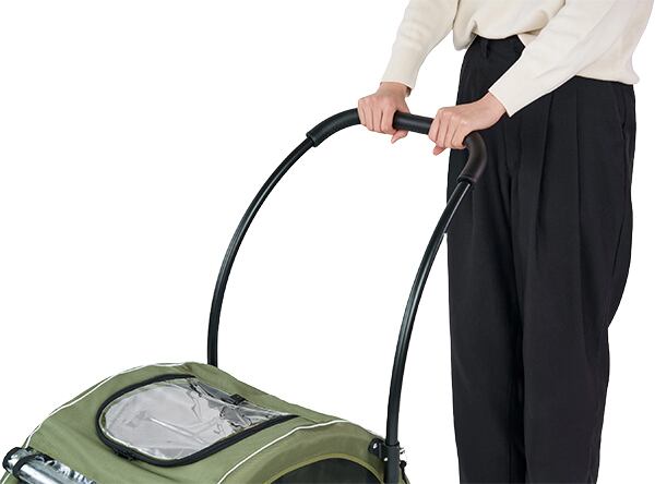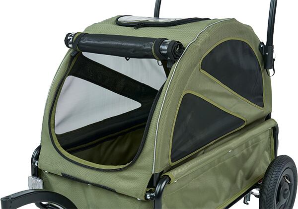 中型犬や小型犬の多頭飼いに人気の中型モデル。車輪を外せば、ハウスとしてご使用できます。愛犬が自ら乗り降りできる設計で抱きあげる必要がありません。折りたたむと厚さ26cmのコンパクトに。フロント・リア両サイドにリフレクターを搭載し、夜道も安心。