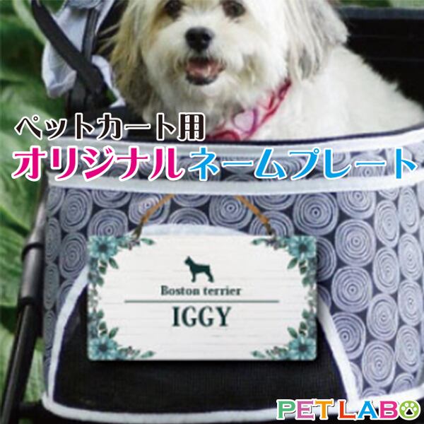 ペットカート・ペットバギーに取り付けることができる、軽くて丈夫な樹脂製プレートに耐水性UVプリントをしたカート用ネームプレートです。