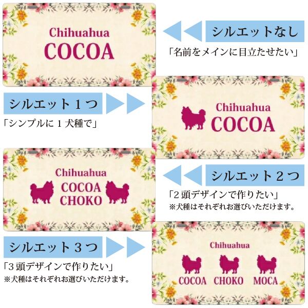 プレートデザインは32種類からお選びいただけ、犬用シルエットは200種類以上、猫用シルエットは60種類以上をご用意いたしました。