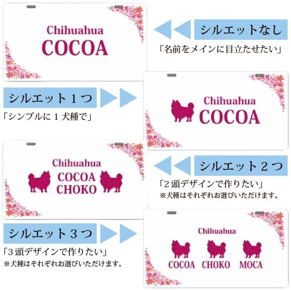 プレートデザインは32種類からお選びいただけ、犬用シルエットは200種類以上、猫用シルエットは60種類以上をご用意いたしました。