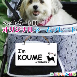 ペットカート・ペットバギーに取り付けることができる、軽くて丈夫な樹脂製プレートに耐水性UVプリントをしたカート用ネームプレートです。