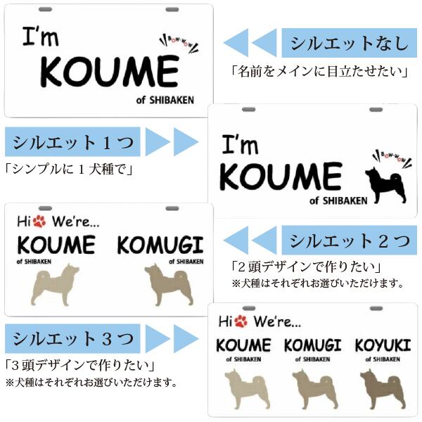 プレートデザインは32種類からお選びいただけ、犬用シルエットは200種類以上、猫用シルエットは60種類以上をご用意いたしました。