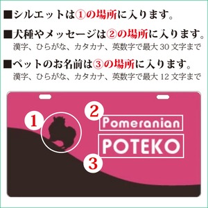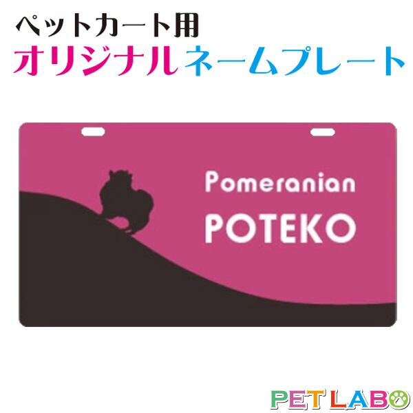ペットカート・ペットバギーに取り付けることができる、軽くて丈夫な樹脂製プレートに耐水性UVプリントをしたカート用ネームプレートです。