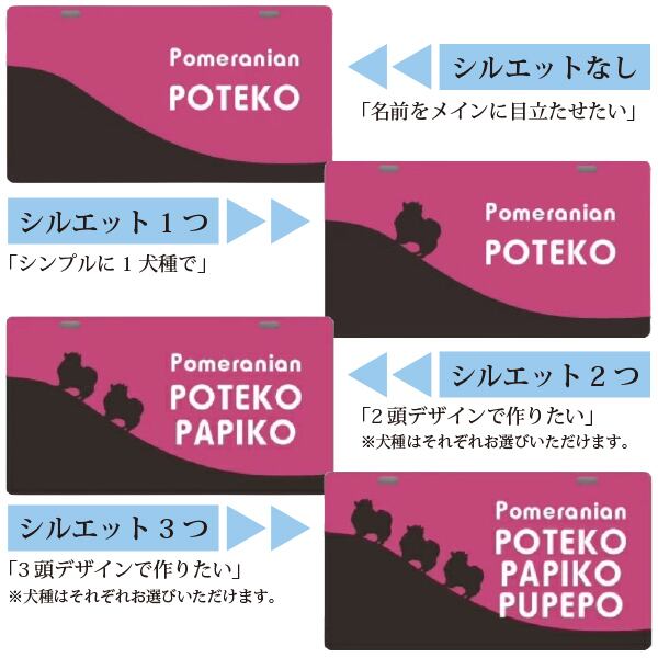 プレートデザインは32種類からお選びいただけ、犬用シルエットは200種類以上、猫用シルエットは60種類以上をご用意いたしました。