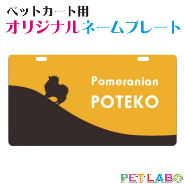 ペットカート・ペットバギーに取り付けることができる、軽くて丈夫な樹脂製プレートに耐水性UVプリントをしたカート用ネームプレートです。