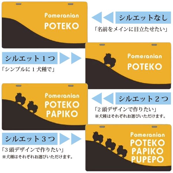 プレートデザインは32種類からお選びいただけ、犬用シルエットは200種類以上、猫用シルエットは60種類以上をご用意いたしました。