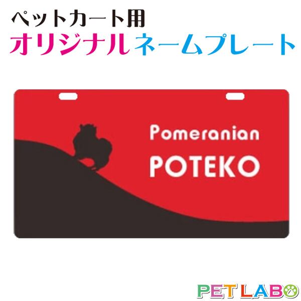 ペットカート・ペットバギーに取り付けることができる、軽くて丈夫な樹脂製プレートに耐水性UVプリントをしたカート用ネームプレートです。