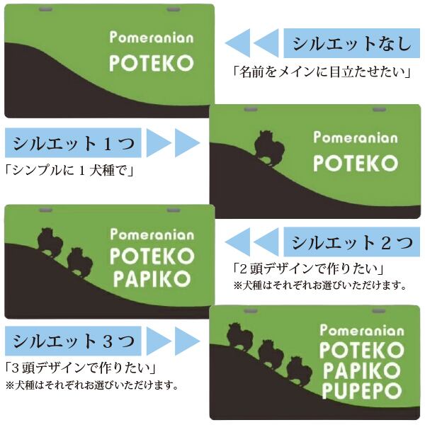 プレートデザインは32種類からお選びいただけ、犬用シルエットは200種類以上、猫用シルエットは60種類以上をご用意いたしました。