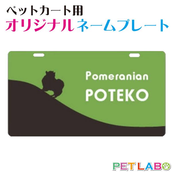 ペットカート・ペットバギーに取り付けることができる、軽くて丈夫な樹脂製プレートに耐水性UVプリントをしたカート用ネームプレートです。