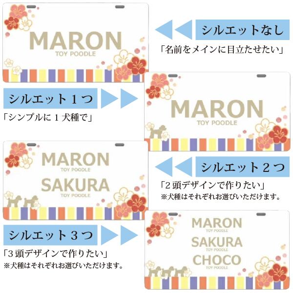 プレートデザインは32種類からお選びいただけ、犬用シルエットは200種類以上、猫用シルエットは60種類以上をご用意いたしました。