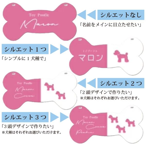 プレートデザインは34種類からお選びいただけ、犬用シルエットは200種類以上、猫用シルエットは60種類以上をご用意しました。さらに、QRコードを入れることも可能。愛するわが子のお名前や特別なメッセージを入れることで、世界にひとつだけのプレートが完成します!!