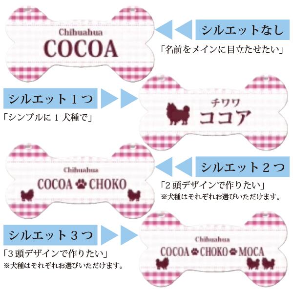 プレートデザインは34種類からお選びいただけ、犬用シルエットは200種類以上、猫用シルエットは60種類以上をご用意しました。さらに、QRコードを入れることも可能。愛するわが子のお名前や特別なメッセージを入れることで、世界にひとつだけのプレートが完成します!!