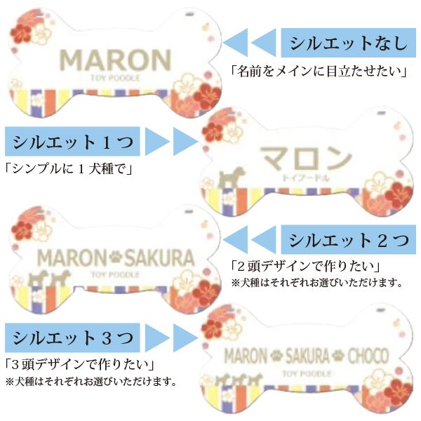プレートデザインは34種類からお選びいただけ、犬用シルエットは200種類以上、猫用シルエットは60種類以上をご用意しました。さらに、QRコードを入れることも可能。愛するわが子のお名前や特別なメッセージを入れることで、世界にひとつだけのプレートが完成します!!