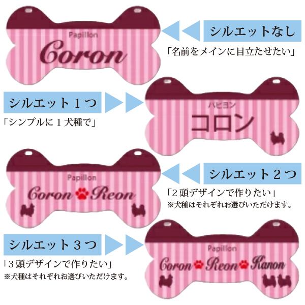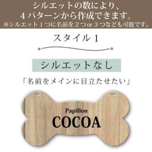 プレートデザインは34種類からお選びいただけ、犬用シルエットは200種類以上、猫用シルエットは60種類以上をご用意しました。さらに、QRコードを入れることも可能。愛するわが子のお名前や特別なメッセージを入れることで、世界にひとつだけのプレートが完成します!!