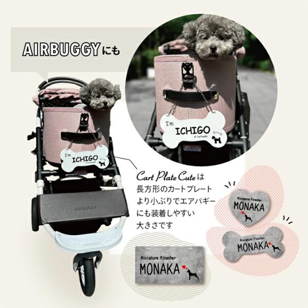 ペットカート・ペットバギーに簡単に取り付けられる、軽くて丈夫な樹脂製のオリジナルカートプレートです。耐水性のUVプリント加工が施されたこの骨型プレートは、愛するペットのカートをより個性的に演出します!