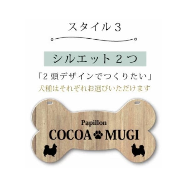 プレートデザインは34種類からお選びいただけ、犬用シルエットは200種類以上、猫用シルエットは60種類以上をご用意しました。さらに、QRコードを入れることも可能。愛するわが子のお名前や特別なメッセージを入れることで、世界にひとつだけのプレートが完成します!!