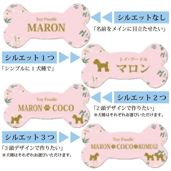 プレートデザインは34種類からお選びいただけ、犬用シルエットは200種類以上、猫用シルエットは60種類以上をご用意しました。さらに、QRコードを入れることも可能。愛するわが子のお名前や特別なメッセージを入れることで、世界にひとつだけのプレートが完成します!!