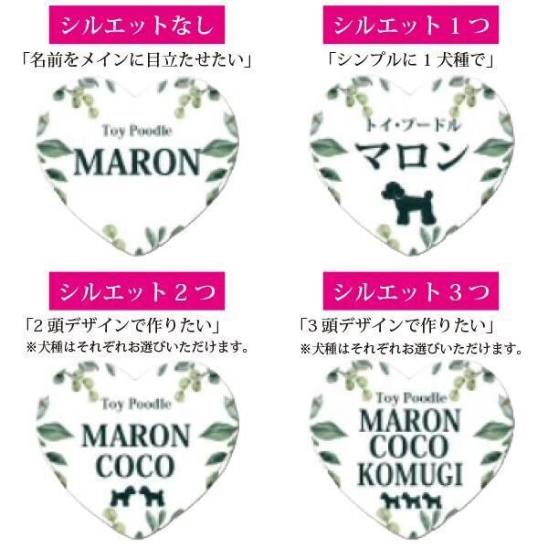 プレートデザインは34種類からお選びいただけ、犬用シルエットは200種類以上、猫用シルエットは60種類以上をご用意しました。さらに、QRコードを入れることも可能。愛するわが子のお名前や特別なメッセージを入れることで、世界にひとつだけのプレートが完成します!!