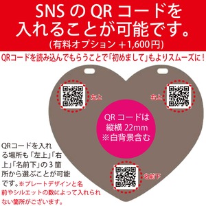 プレートデザインは34種類からお選びいただけ、犬用シルエットは200種類以上、猫用シルエットは60種類以上をご用意しました。さらに、QRコードを入れることも可能。愛するわが子のお名前や特別なメッセージを入れることで、世界にひとつだけのプレートが完成します!!