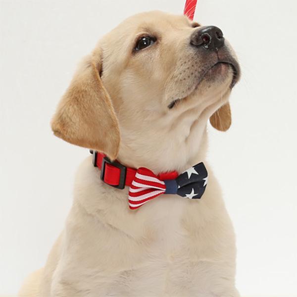 星条旗柄と『LOVE』のリボンが 存在感バツグン!の犬用首輪です。