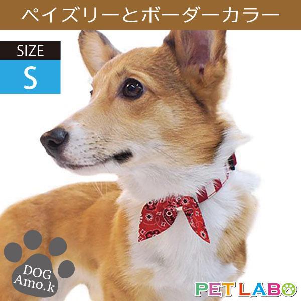メール便発送OK!! ペイズリーとボーダーカラー(Sサイズ) Amo.k アモワークス 首輪 胴輪 ハーネス リード 引き手 お散歩 お出かけ