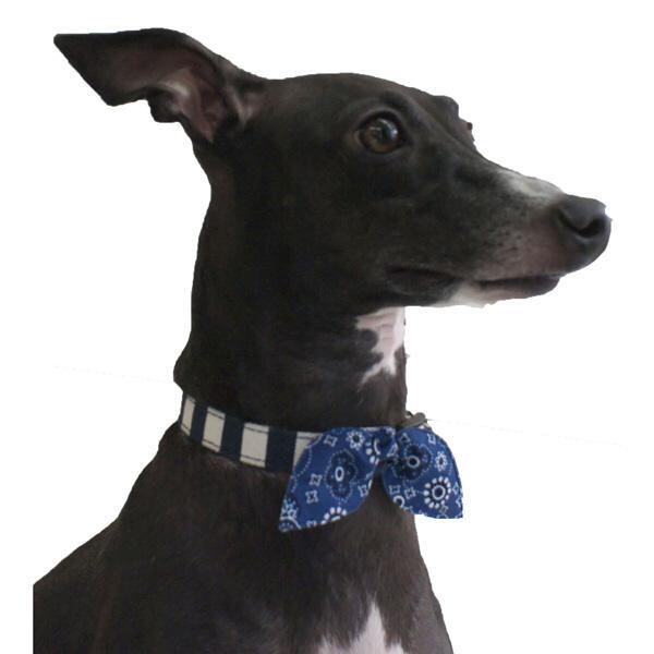 ペイズリー+ボーダーが大人気! カジュアルなデザインの犬用首輪です。