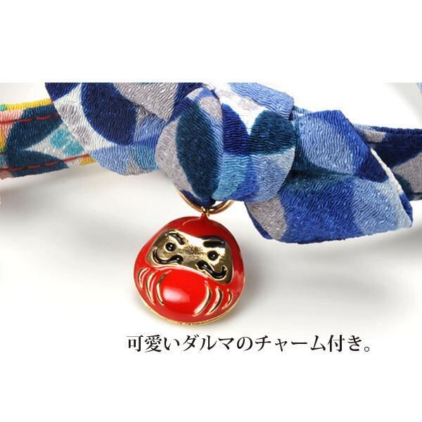 縁起がいい『めでたいしるし』という意味を表現した七宝柄のちりめん生地です。可愛いだるまのチャームを付けました。だるまは願いを叶えてくれる縁起物です。