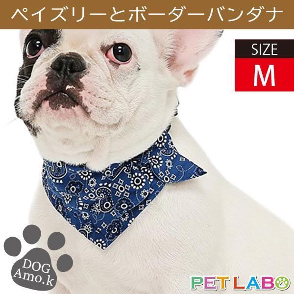 メール便発送OK!! ペイズリーとボーダーバンダナ(Mサイズ) Amo.k アモワークス 首輪 胴輪 ハーネス リード 引き手 お散歩 お出かけ