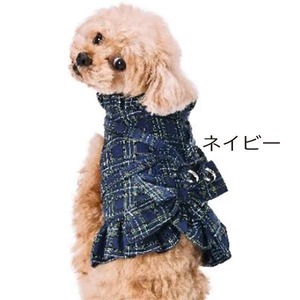 レッドとネイビーの上品なチェック柄にリボンとフリルで可愛らしく、お洋服の様に着こなして頂ける犬用ハーネスです。