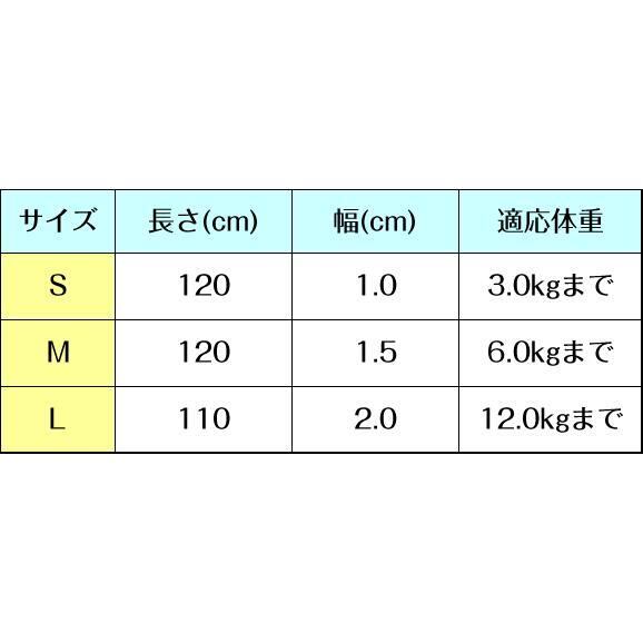 Sサイズ:長さ120cm×幅1.0cm 適応体重3.0kg未満