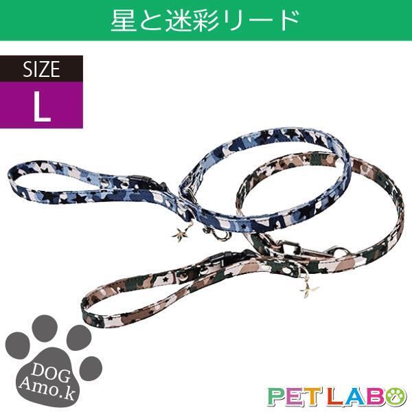 メール便発送OK!! 星と迷彩リード(Lサイズ) Amo.k アモワークス 首輪 胴輪 ハーネス リード 引き手 お散歩 お出かけ