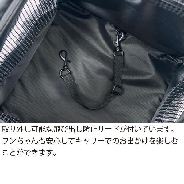 ◎上部の内側にはワンちゃんの様子が確認できるメッシュフタをデザイン。二重構造になっているので、シチュエーションによって使い分けることができます。