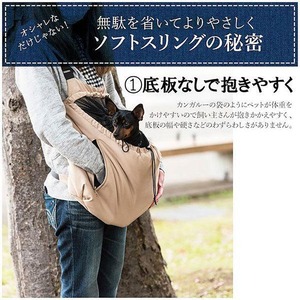カンガルーの袋のようにペットが体重をかけやすいので飼い主さんが抱きかかえやすく、底板の幅や硬さなどのわずらわしさがありません。