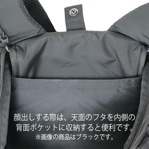 ●顔出しの際は天面のフタを内側の背面ポケットに収納。