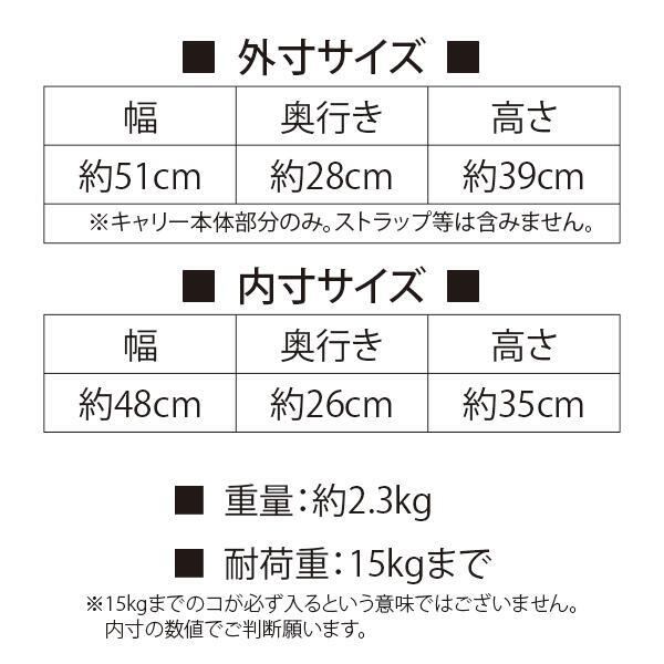 ※15kgまでのコが必ず入るという意味ではございません。バッグのサイズと併せてご考慮ください。