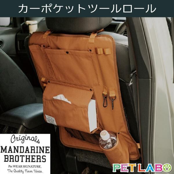 車の座席の背面に取り付け、愛犬とのドライブやお出かけに必要なグッズを収納できるツールロールです。