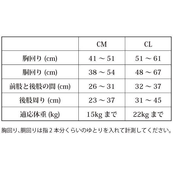 CLサイズ:胸回り51cm~61cm、胴回り48cm~67cm