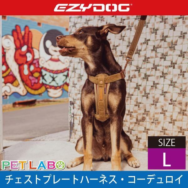 EZYDOG(イージードッグ) チェストプレートハーネス・コーデュロイ(Lサイズ) 犬用 胴輪 散歩 引っ張り緩和 反射素材 背面プレート