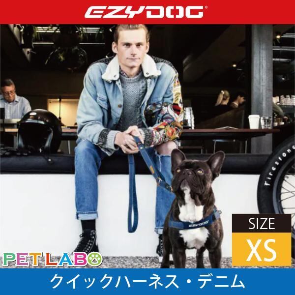 EZYDOG(イージードッグ) クイックハーネス・デニム(XSサイズ) 犬用 胴輪 散歩 引っ張り緩和 反射素材 簡単装着 ウェットスーツ素材 肌にも優しい