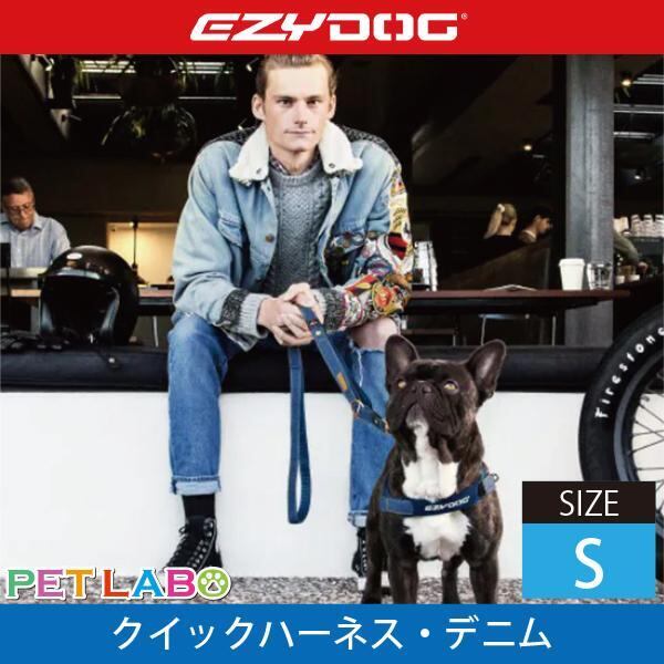 EZYDOG(イージードッグ) クイックハーネス・デニム(Sサイズ) 犬用 胴輪 散歩 引っ張り緩和 反射素材 簡単装着 ウェットスーツ素材 肌にも優しい