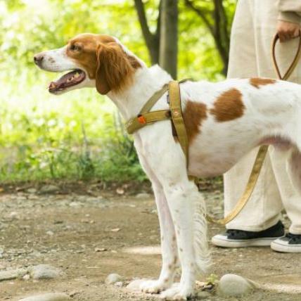 首から通して、わきの下でバックルを留めるだけの簡単装着なので、通常の首輪やハーネスが苦手な愛犬やオーナー様に最適です。