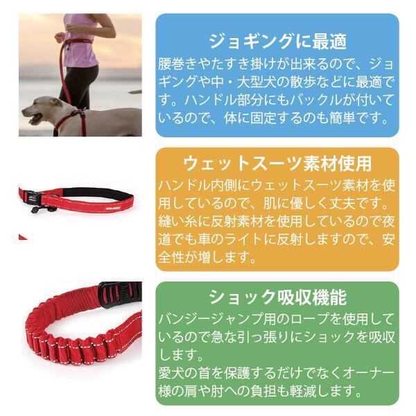 ショック吸収機能付きで愛犬の首やオーナー様への負担が軽減される腰に巻くタイプのリードです。