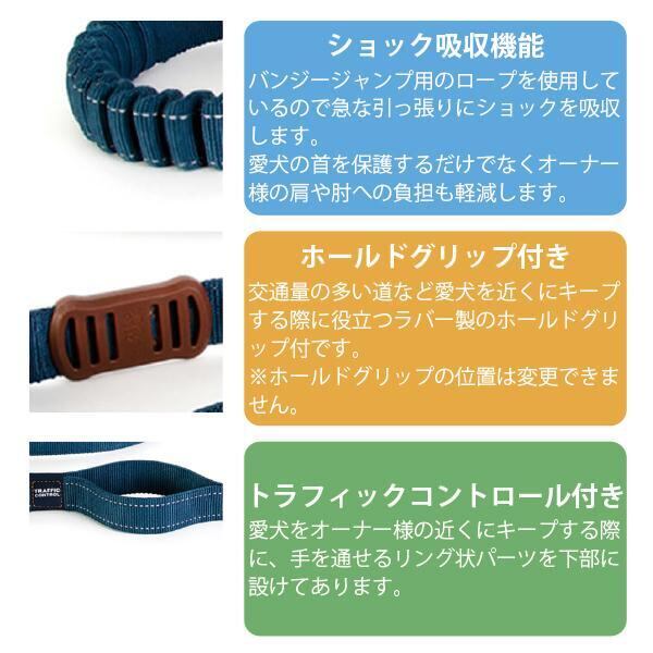 ショック吸収機能付きで愛犬の首やオーナー様への負担が軽減される腰に巻くタイプのリードです。