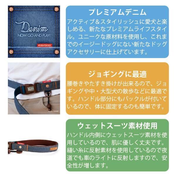 EZYDOG(イージードッグ) ロードランナーライト・デニム(200cm) 犬用 胴輪 散歩 ハンドル付き 反射機能 EVA製パッド