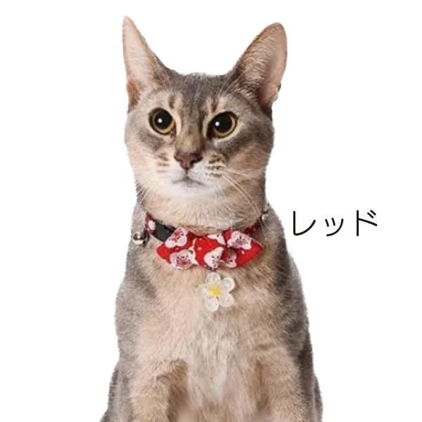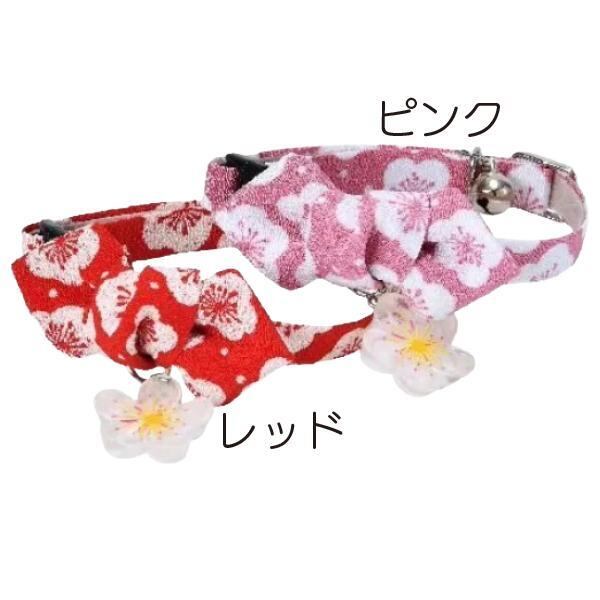 梅柄のちりめん生地が映えるようにリボンをあしらった猫用首輪です。