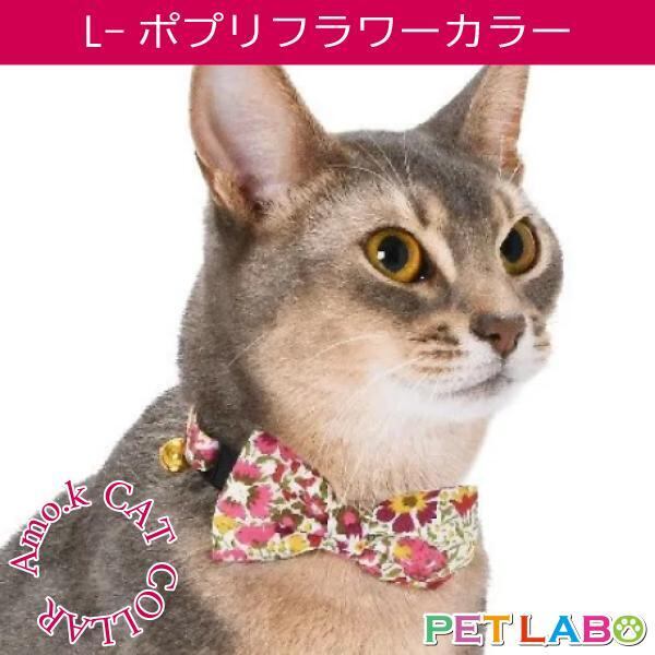 【メール便送料200円】猫用首輪・L-ポプリフラワーカラー Amo.k アモワークス 首輪 胴輪 ハーネス お散歩 お出かけ お洒落 おしゃれ かわいい