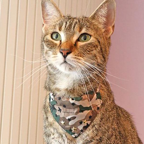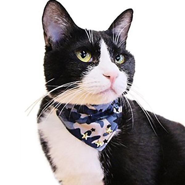 星柄をプラスした迷彩柄がオシャレな 猫ちゃん用のバンダナです。