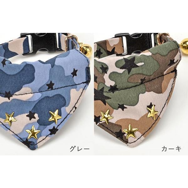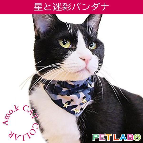 【メール便送料200円】Amo.k(アモワークス)猫用首輪・星と迷彩バンダナ 首輪 胴輪 ハーネス お散歩 お出かけ お洒落 おしゃれ かわいい