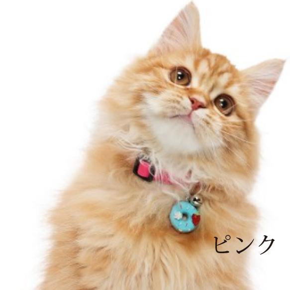 カラフルなドーナツチャームがパッと目を引く猫首輪。