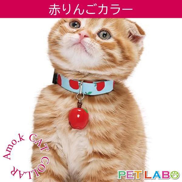 【メール便発送可能です】Amo.k(アモワークス)猫用首輪・赤りんごカラー 首輪 胴輪 ハーネス お散歩 お出かけ お洒落 おしゃれ かわいい